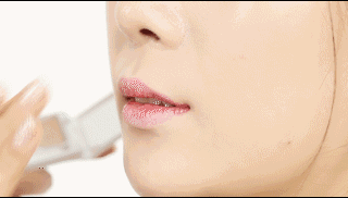 唇蜜打造丰满小翘唇!把上唇画厚,人中视觉上就缩短了。选择偏明亮的淡色唇蜜,着重地轻点在唇峰以及在下唇中央上色,打造水润丰满的小翘唇。