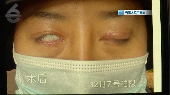 除了鼻子,更加严重的问题是眼睛,因为做了眼部整形手术后,李女士左眼呈现出了三层眼皮,右眼甚至无法闭合,眼角膜也因此受损,右眼的视力几近丧失,这样的结果让李女士欲哭无泪、追悔莫及。