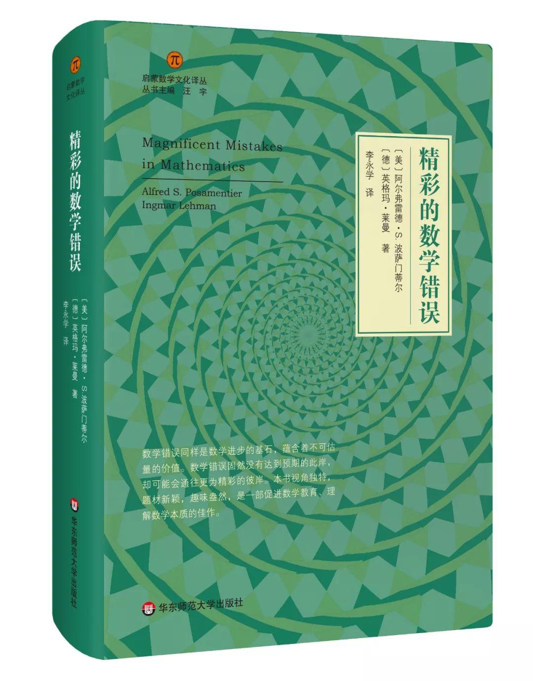 《精彩的数学错误》则由美国数学教育家阿尔弗雷德·S.波萨门蒂尔和德国数学教育家英格玛·莱曼共同展示了一些“精彩的错误”是怎样引发我们对若干关键数学概念的理解。