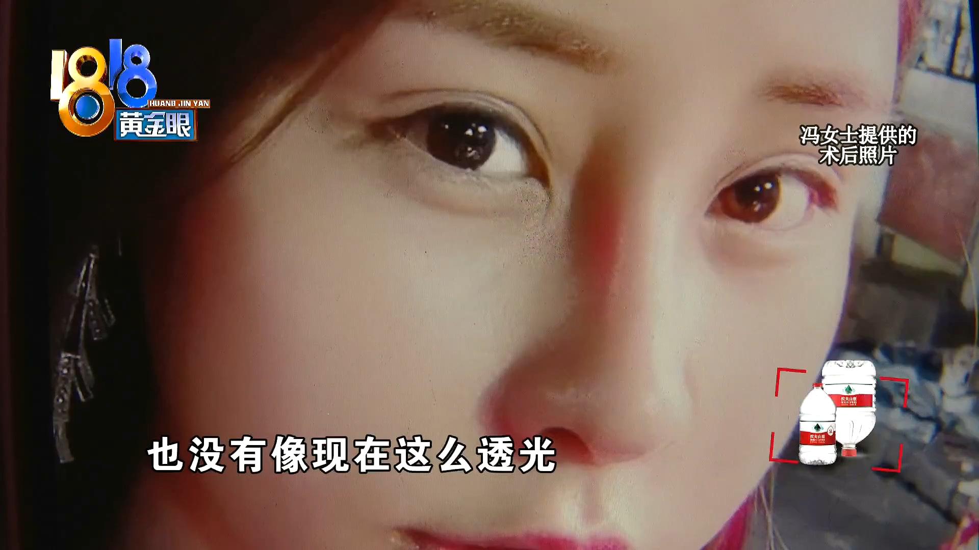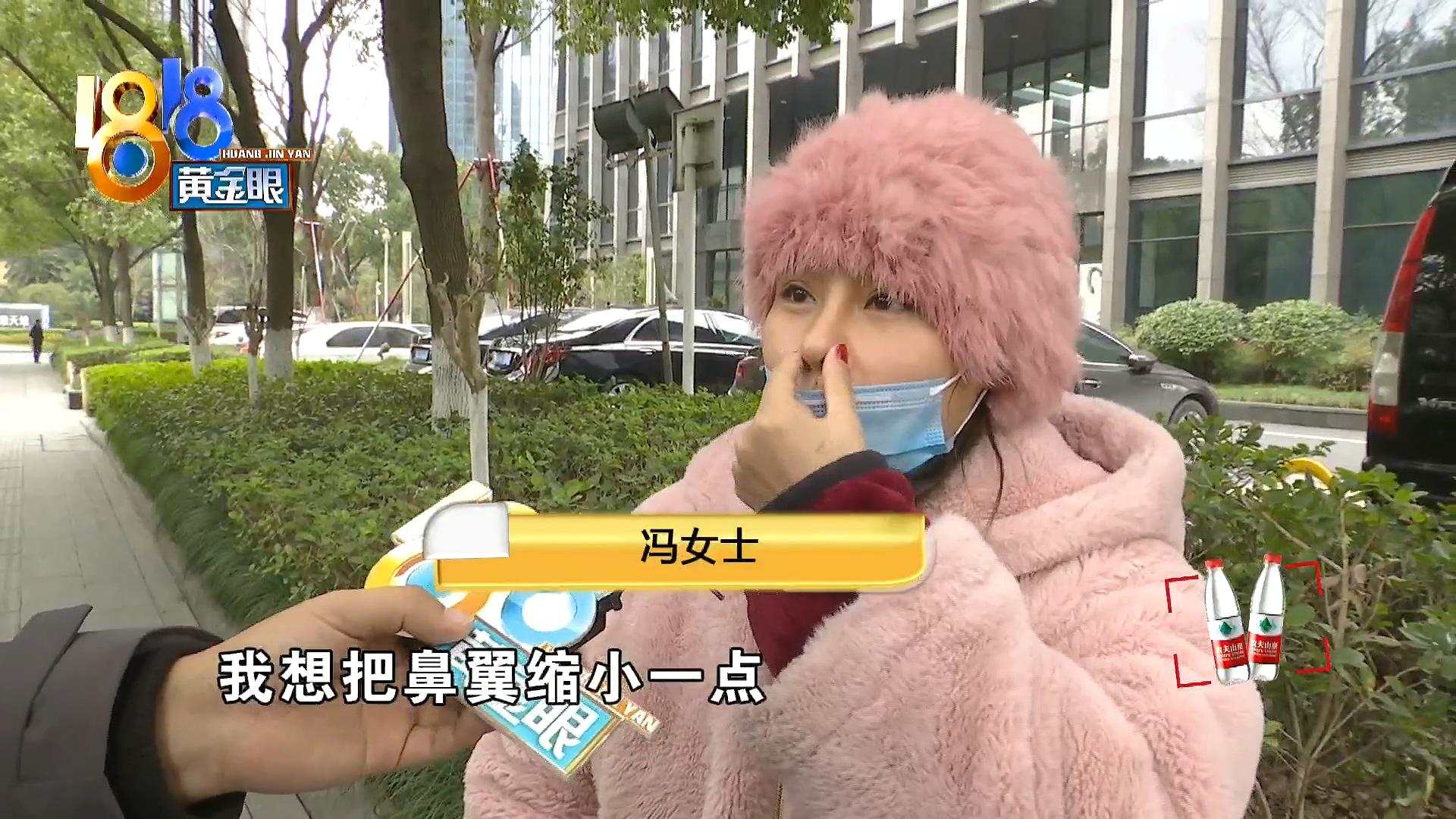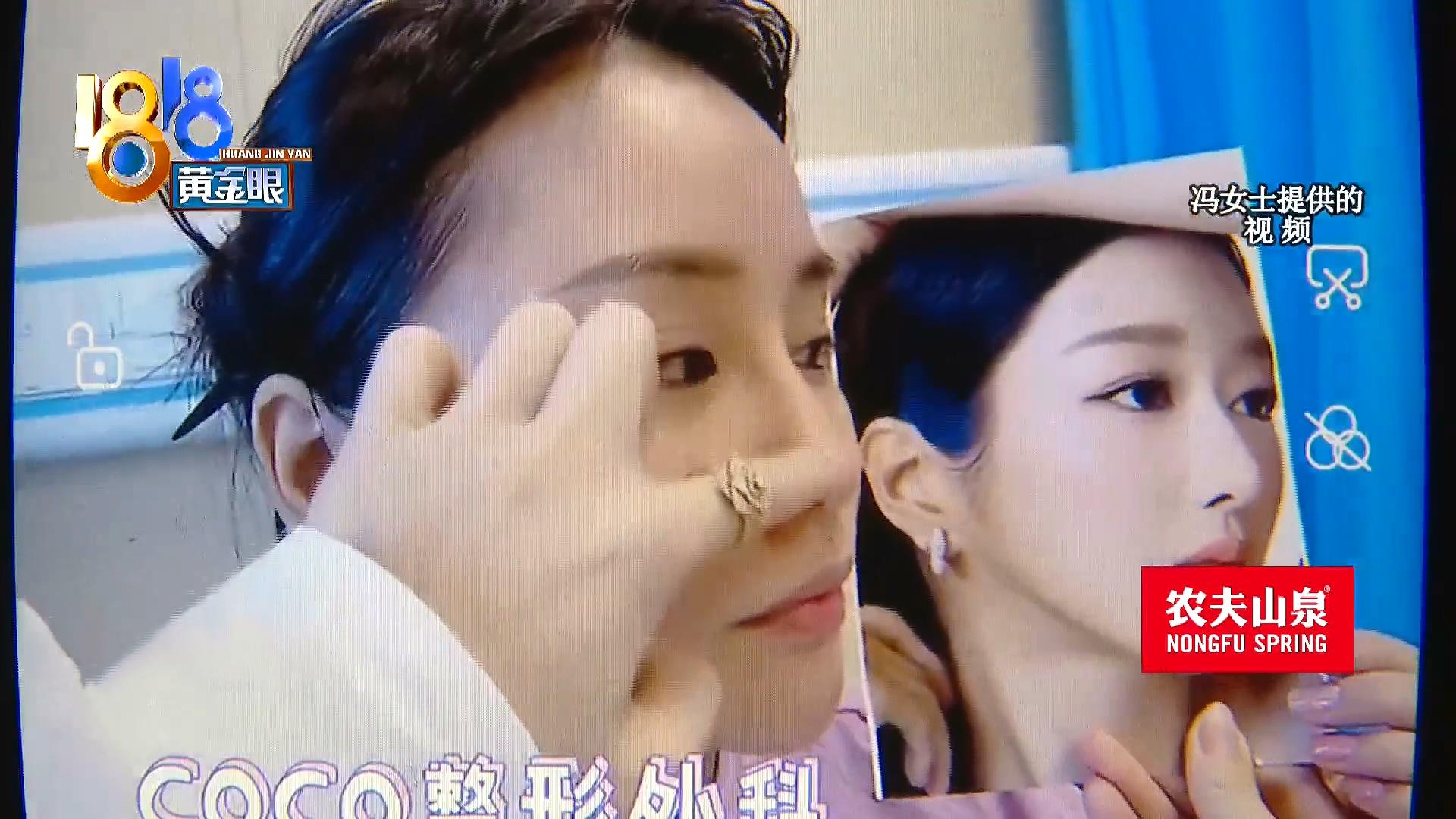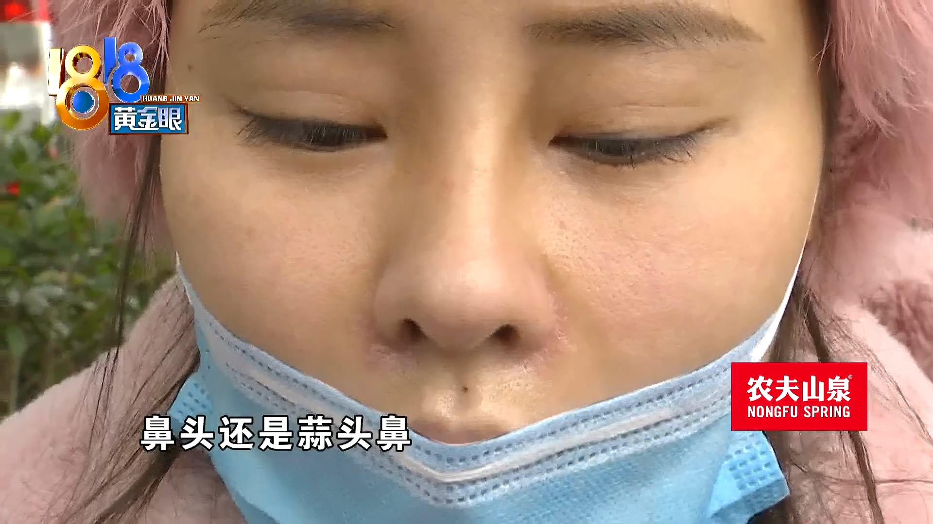 冯女士:有点往上,然后鼻孔也是漏出来的,就完全不一样,而且那个鼻子是很小的,有鼻翼也缩小的,但我这个鼻翼还是这么大,鼻头还是蒜头鼻,鼻梁是往这边歪的嘛,就是歪得挺那个的。