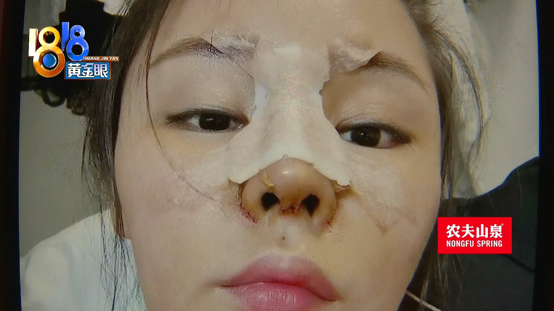 去年九月一号,冯女士两万三千八百块钱,转给杭州群英整形外科门诊部有限公司做了手术。但他说拆线之后发现鼻子歪了。