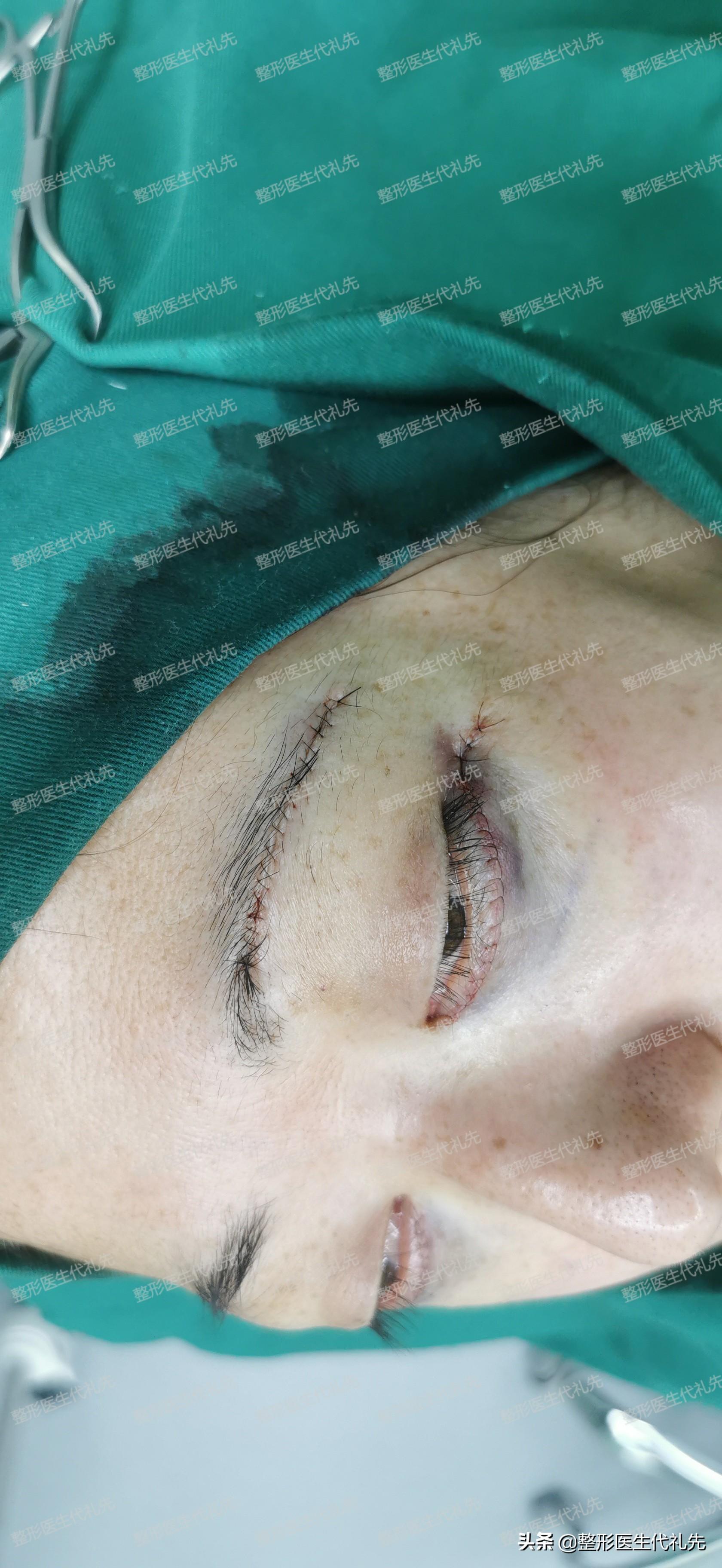 在缝合完成,没有包扎前,我和医生讲,一定要帮我拍下来做个纪念。人生的第一台整形美容手术完成了。