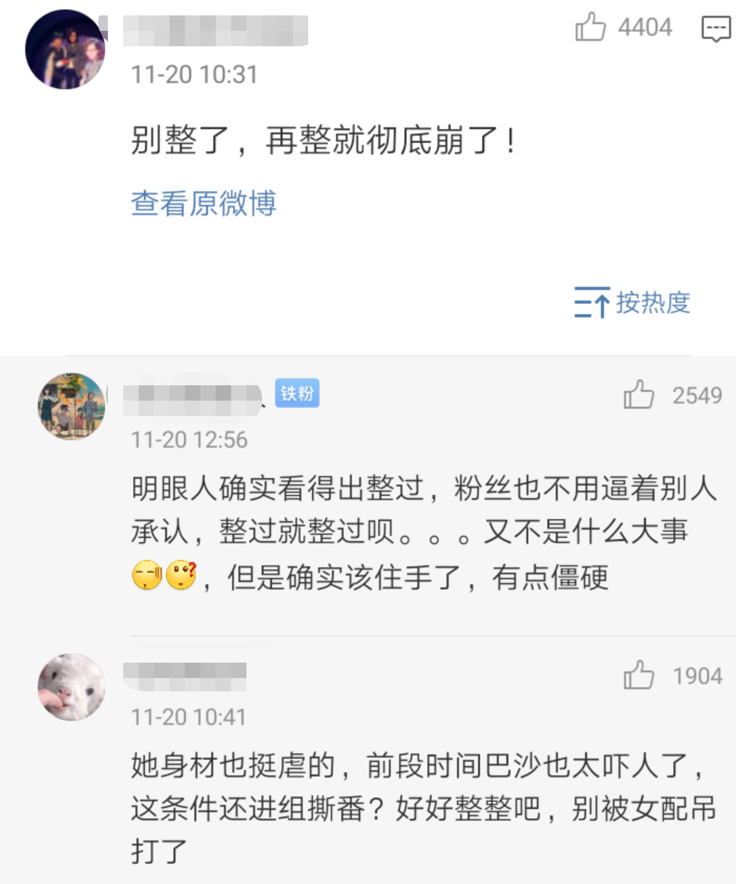 图片曝光后,众多网友开始了嘲讽,说是为了整容。