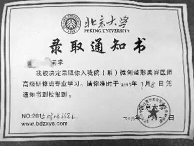 该培训班以“北京大学高级微创整形医师培训部”名义进行招生,并称培训课程为“北京大学微创整形美容医师高级研修班”。