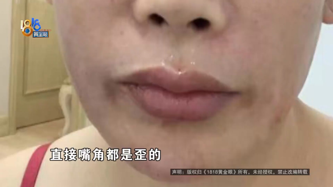 赵女士:这个是10月10号,在维多利亚,经过“吉娜”给推荐的。我做的是眉弓注射、卧蚕注射、嘴周的改良,还有微笑唇,但是做出来,这就是在手术室刚开始注射完的时候我拍的照片。当天只是觉得肿胀,没觉得什么问题,上完冷敷之后,我再一看这个脸,卧蚕根本没做一样