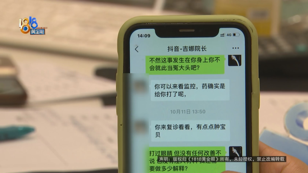 赵女士否认与医生拥抱,她提供了10月11号凌晨与介绍人的聊天记录。凌晨两点多,赵女士说:别提了,卧蚕打了个“寂寞”,并质疑:这个脸是你宣传的那种效果?