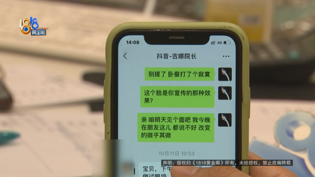 赵女士说,做完项目的当天晚上,她就对效果很不满意