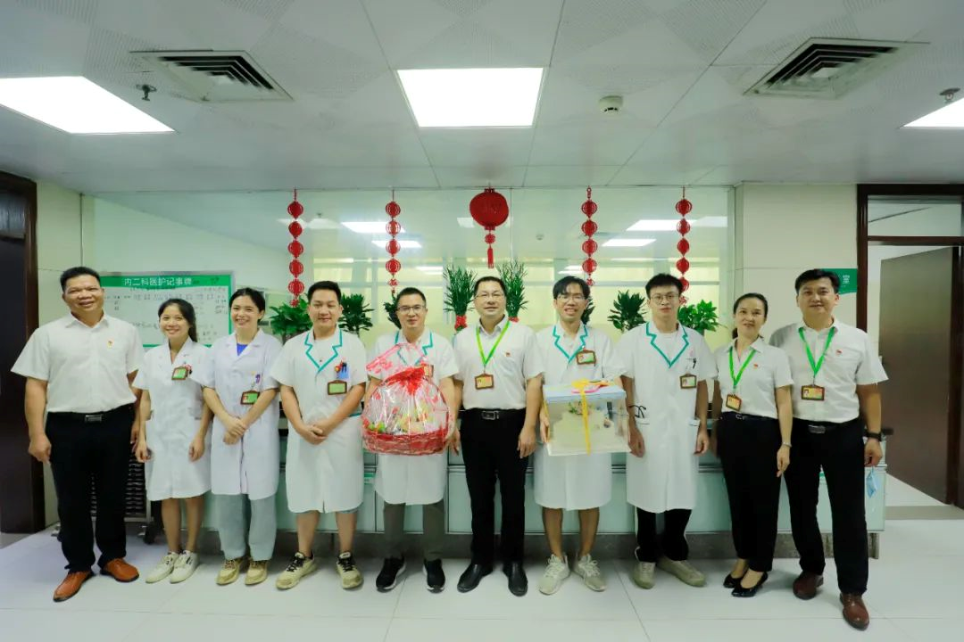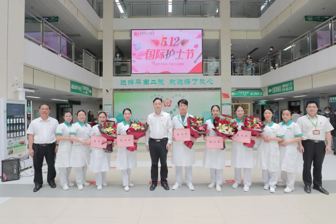 5月12日,平南县第二人民医院开展了“5.12护士节”系列活动!上午,平南县委副书记甘德权、平南县卫生健康局党委副书记、副局长张国晓一行到平南县第二人民医院为护士代表送上鲜花和慰问金。随后,医院党委副书记、院长邓兴昌率党政领导班子成员及相关职能部门负责人,深入医院各个科室,慰问辛勤工作的护理工作者,为她们送去了节日的祝福以及礼物。