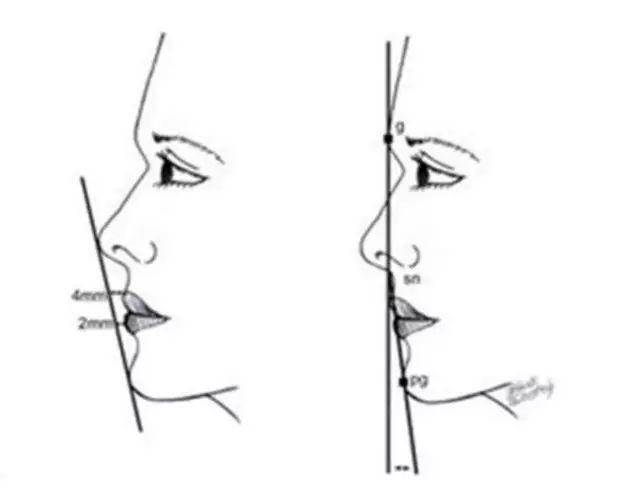 医学上有一个“三点一线”的美学概念,所谓“三点一线”指从侧面看一个人的面部,如果鼻尖、唇珠、下颏尖部这三个点在同一条直线上,说明他的面部综合比例匀称。