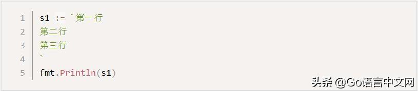 Go语言中要定义一个多行字符串时,就必须使用反引号字符: