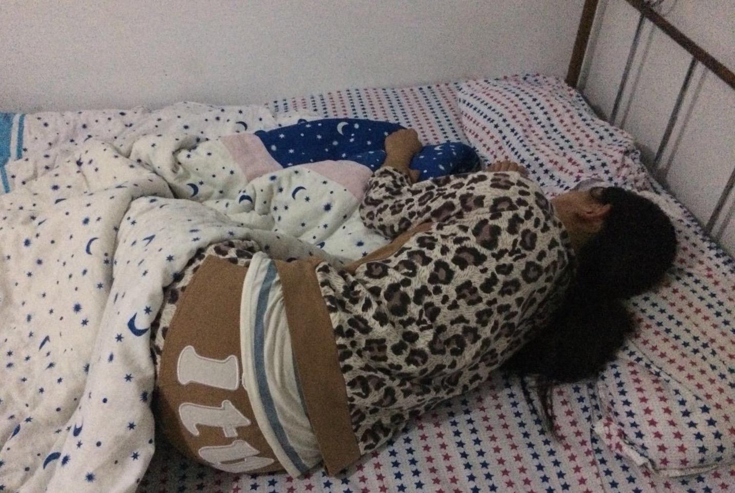 胡云侧躺在出租屋里。受访者供图