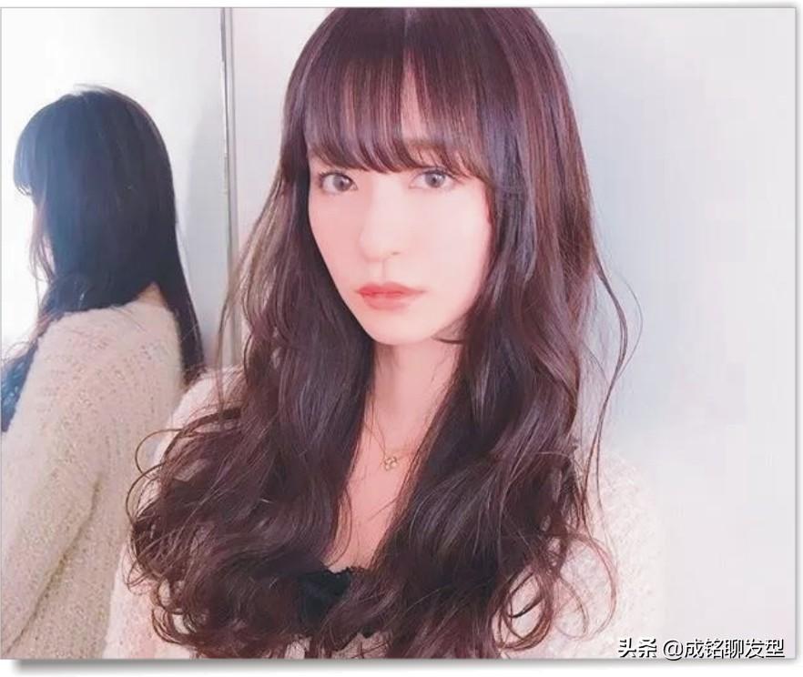 中长发或长发类型的发型好选择烫发,因为蓬松的发型会把脸型衬托的圆润一些,再加上刘海的修饰作用,长脸变小脸,时尚又减龄。