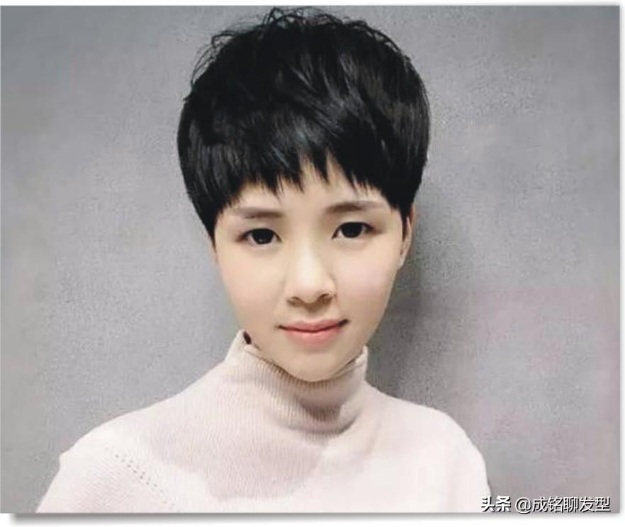 超短类型的发型尽量不要做的太服帖,可以通过造型或者烫发让发型蓬松一些,这样才能让发型更好看,对脸型的修饰作用也就更到位了。
