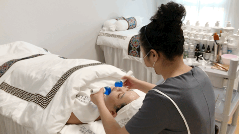 接着会用一只温和的喷枪为我们肌肤皮肤进行深度清洁,丰富的水氧对于激活肤质十分有效。感觉每个毛孔都打开了,在大口吸氧、补水~