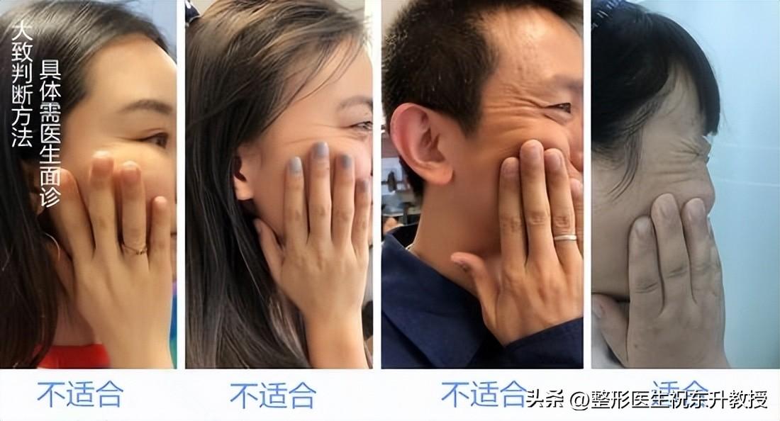 把我们的手指或者手掌放在我们的面颊部,做一个侧面的往后、往上的移位。如果你手的移位的范围能够超过1.5公分,而且你对面部提升的效果要求比较高的前提下,您可以考虑做拉皮手术。