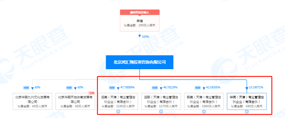 这4家企业分别为润美(天津)商业管理合伙企业(有限合伙)、华绣(天津)商业管理合伙企业(有限合伙)、熙美(天津)商业管理合伙企业(有限合伙) 和润熙(天津)商业管理合伙企业(有限合伙)。