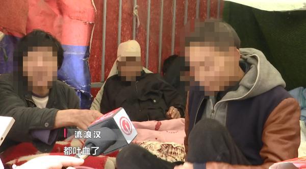 流浪汉:我骨节增生,我的腰上长了这么大的一个包,他也生病了,都吐血了。