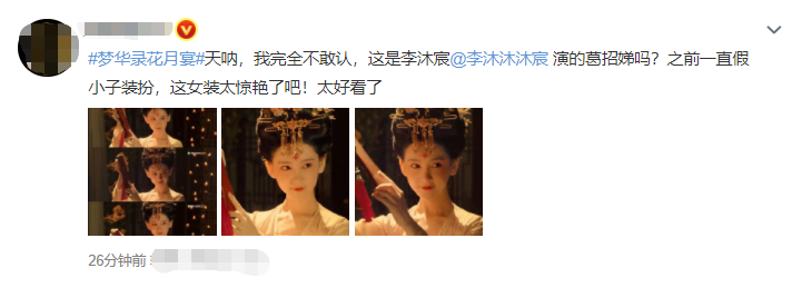 但这样的颜值扮相依然不足以让人感到惊艳,直到永安楼开业,在花月宴上葛招娣同样以花魁扮相出场,穿上唐装又画了精致的妆容,完全让人认不出,只能说有种整容叫《梦华录》“葛招娣”,不仅美的不可方物,换上女装更是撞脸李沁。