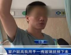 小贺说,那天晚上七点左右,老师让他去开窗户。窗户很高,他用手一拽,没想到玻璃竟然脱落,直接砸在小贺身上。当即将鼻头的部分切下来了,只有一点皮连接着。小贺的手也被划伤,流了很多血。