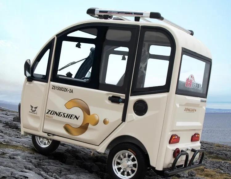 两门三座,把手式转向,还有MP3等功能,液压弹簧减震,舒适的减震后桥,价格在8千左右,并且符合标准,可以上牌,适合出行代步。