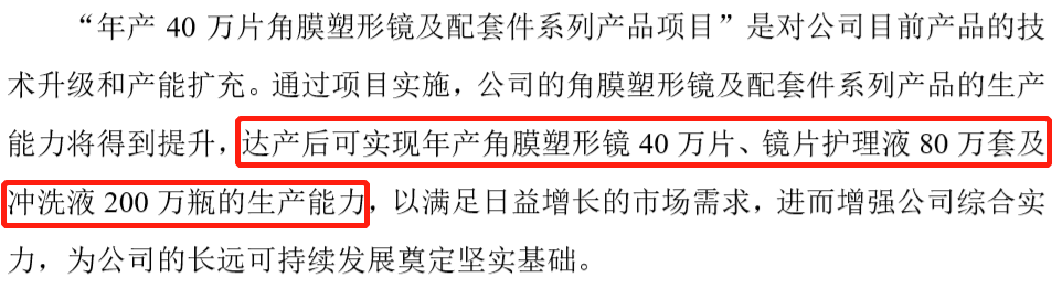 所以建产能理所当然成为公司的首要任务,毕竟有货了才可能有后面的事情,而这个40万片OK镜的产线除了镜片本身的产能提升,还实现了公司自研的护理产品的自产。