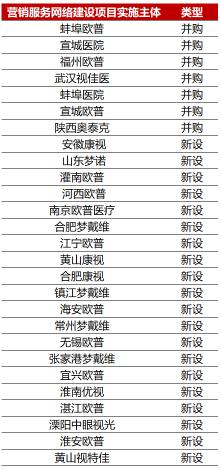 为此,欧普康视在2017年~2018年新设了20家公司,并购了7家公司,初步构建了营销服务网络。