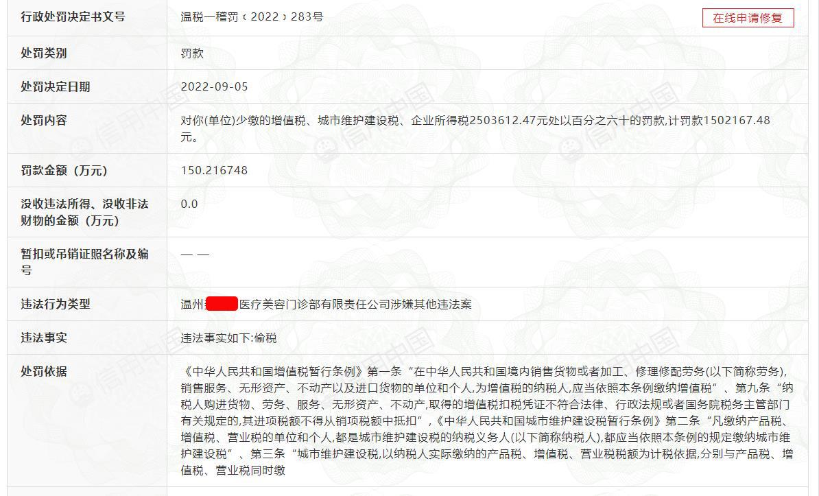 经查,该公司在2018年1月至2020年12月期间,采用通过个人账户收款、网络第三方平台收款以及现金收款不入账等方式隐匿医疗美容项目收入和产品销售收入,进行虚假申报,偷逃税款250.35万元