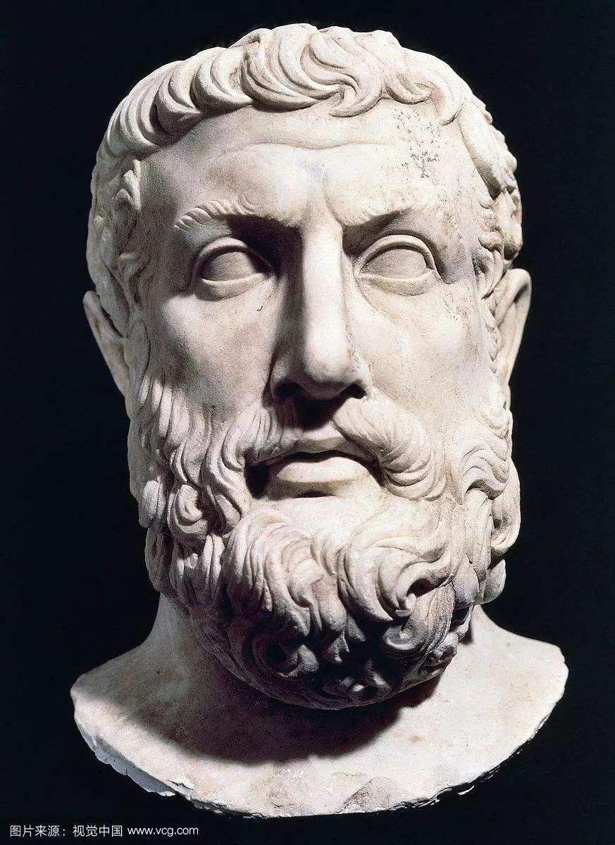 赫拉克利特(前540年-前480年),古希腊哲学家、爱非斯派的创始人。生于以弗所一个贵族家庭,相传生性犹豫,被称为“哭的哲学人”。据传书写过一本《论自然》,但早已失传,现在我们只能见到130多条残篇。其之所以被称为“晦涩哲学家”,乃因为他的文字晦涩难懂,思想深邃。同样,他所面对的哲学问题,依旧围绕本原而展开。他的文章只留下片段,爱用隐喻、悖论,致使后世的解释纷纭。据说,他在隐居时,以草根和植物度日,得了水肿病。他到城里找医生,用哑谜的方式询问医生能否使阴雨天变得干燥起来。医生不懂他的意思。他跑到牛圈里,想用牛粪的热力把身体里的水吸出,结果无济于事,去世时大约60岁。