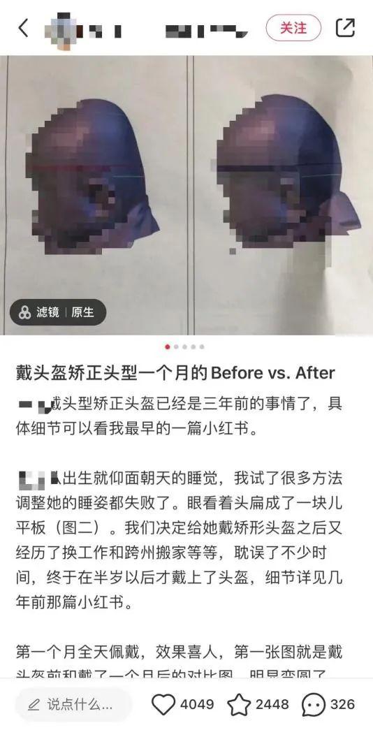 然而,有网友发出质疑:"给婴儿戴矫正头型的'头盔',算不算父母的容貌焦虑转移到了婴儿身上?"