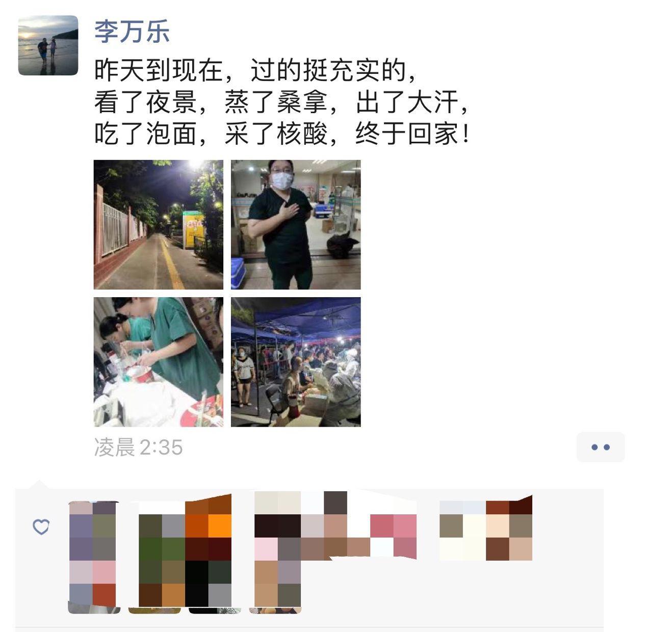 吃了泡面,采了核酸,终于回家!”30日凌晨2:30,龙岗区妇幼保健院李万乐医生在朋友圈发出一条动态,秒赞的都是与他一样还未眠的战友,要么刚结束采样工作,要么准备接替上岗。