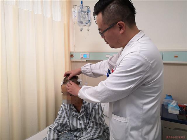 孙家明教授团队清理消毒撕脱头皮,在显微镜下吻合血管。由于一侧血管长度不足以吻合,医生决定从患者左脚背取两根静脉进行血管移植“搭桥”,尽可能皮瓣的血供。这是一场持续10个小时的持久战,次日清晨,手术顺利结束。