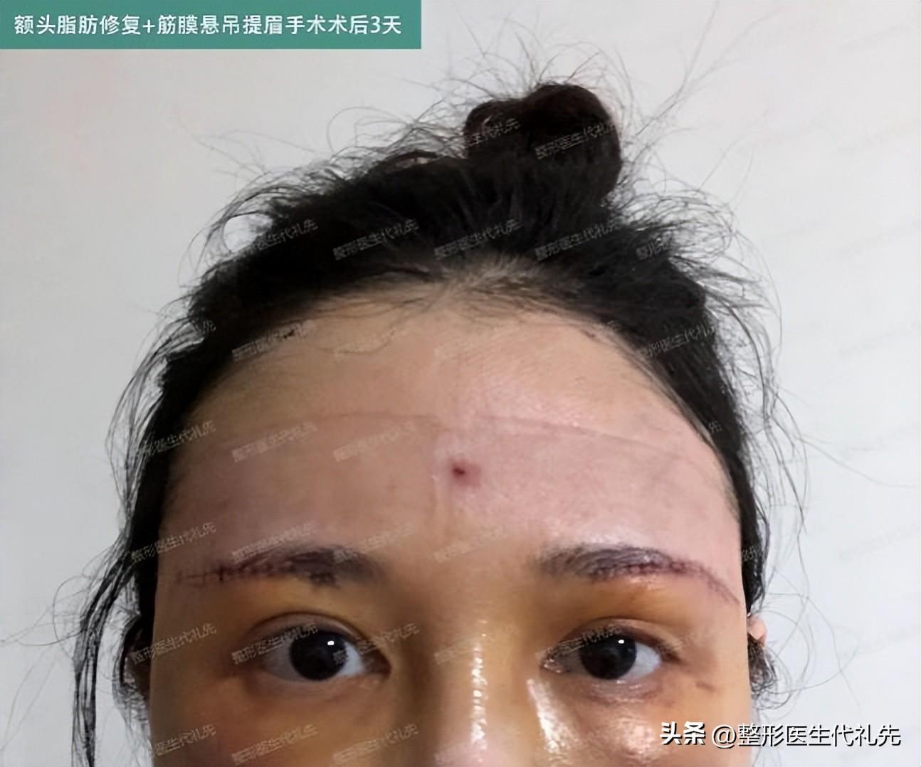 为了改良我眼皮松弛下垂的状况,医生为我定制了提眉手术,针对额头部分凹凸不平的问题,医生说可以做个额头脂肪修复,将膨出来的位置去掉,将凹陷的位置重新过渡填充平整,让我拥有一个漂亮的额头和适当高底的眉骨。