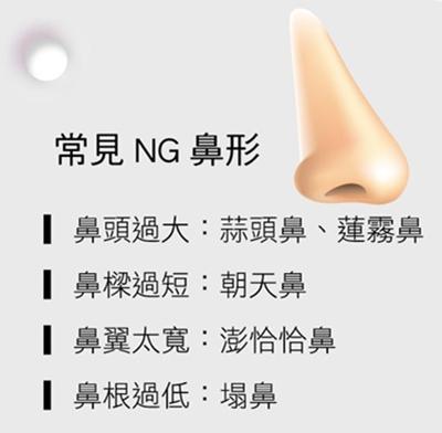 鼻梁线条对男性而言,挺直的鼻梁能增加男子气概;反之,女性的鼻子应保持微翘曲线,才会看起来充满活力、年轻感。而鼻头部分,漂亮的鼻头由正面看应呈海鸥状,鼻头不宜过大,而鼻头大通常是因软骨过大、过宽所造成,或因鼻头的软组织过多所导致。