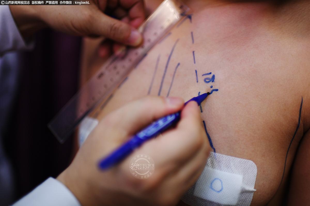 术前,医院工作人员为李文进行拍照。“通过照片,我们可以直观判断手术效果是否达到预期,定期复查时,也可以通过对比更好的了解胸部恢复情况。”工作人员说。责编:王璐