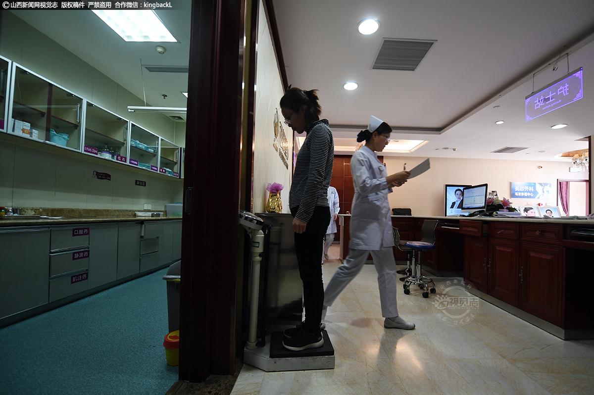 丰胸手术前,工作人员陪同李文来到抽血处化验采样,检测她的身体健康状态。责编:王璐