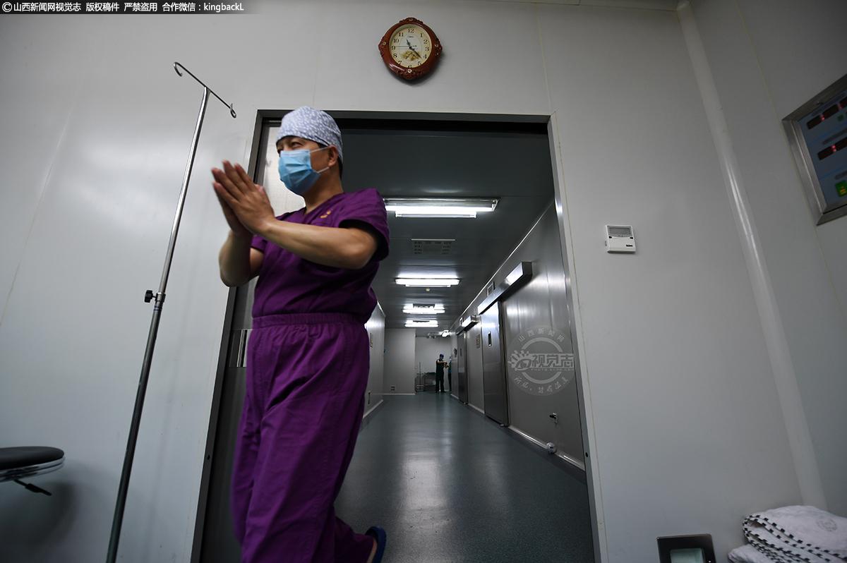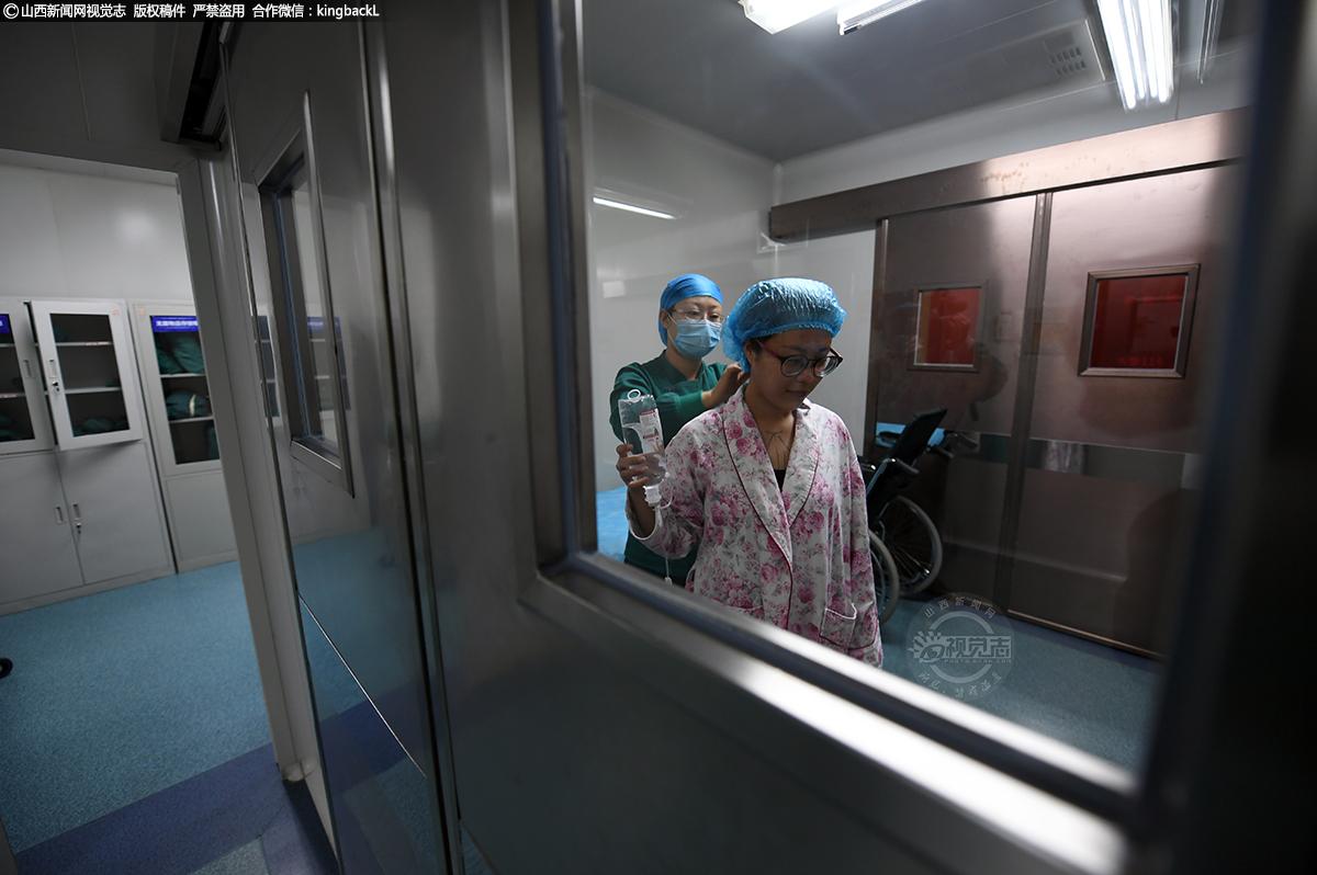 护理人员在帮李文更换手术服,并不时给予她精神安慰,鼓励她勇敢。责编:王璐