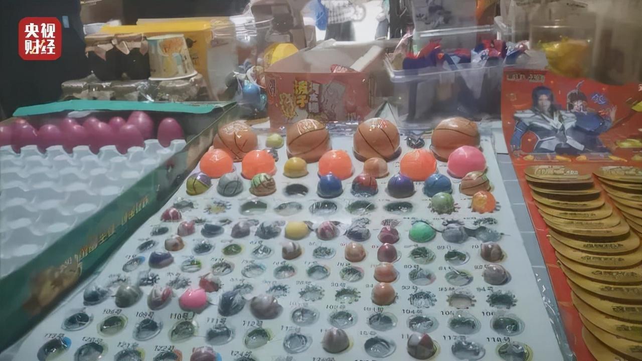 记者对市面上常见的几款现金抽奖玩具,逐一进行了测试。一家小店的66枚金蛋里面,只有7个蛋设置了现金奖,5个一元钱,2个五元钱,中奖金额仅仅15元钱。这种金蛋还可以重复利用,中奖率和中奖额度完全由店家说了算。