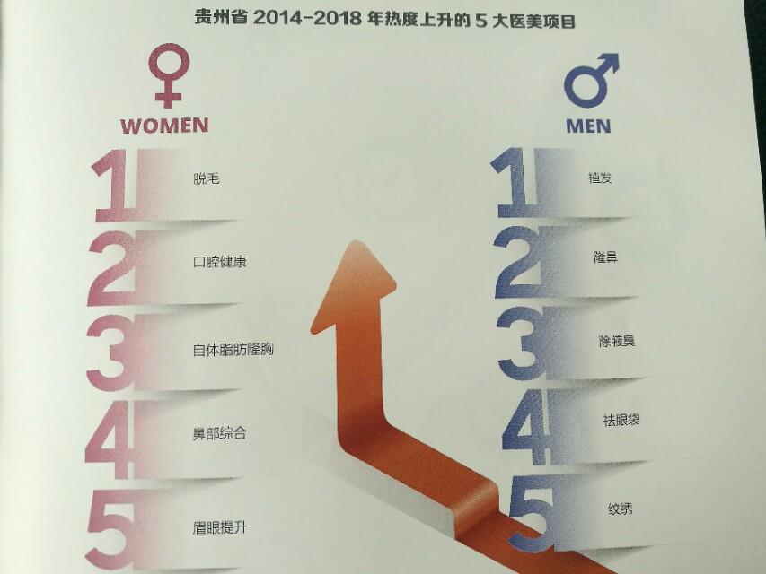 贵州女人喜欢双眼皮、疤痕修复、脱毛、祛眼袋、玻尿酸填充、牙齿矫正、隆鼻、眉眼提升、纹绣、假体隆胸。