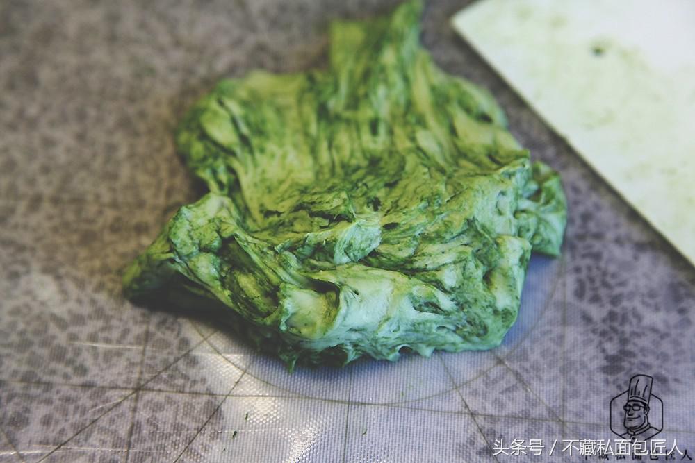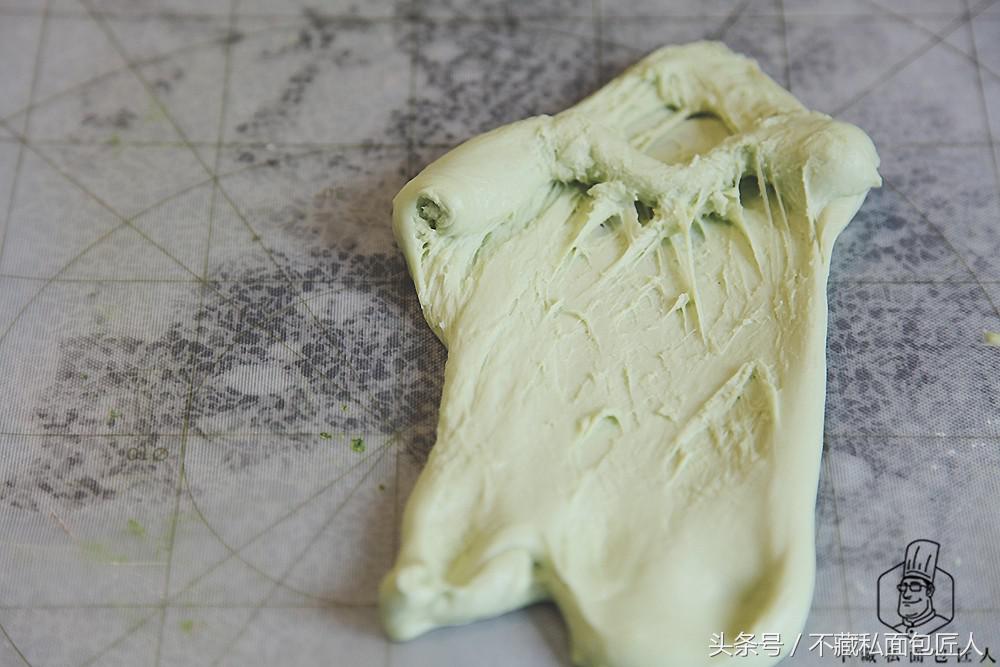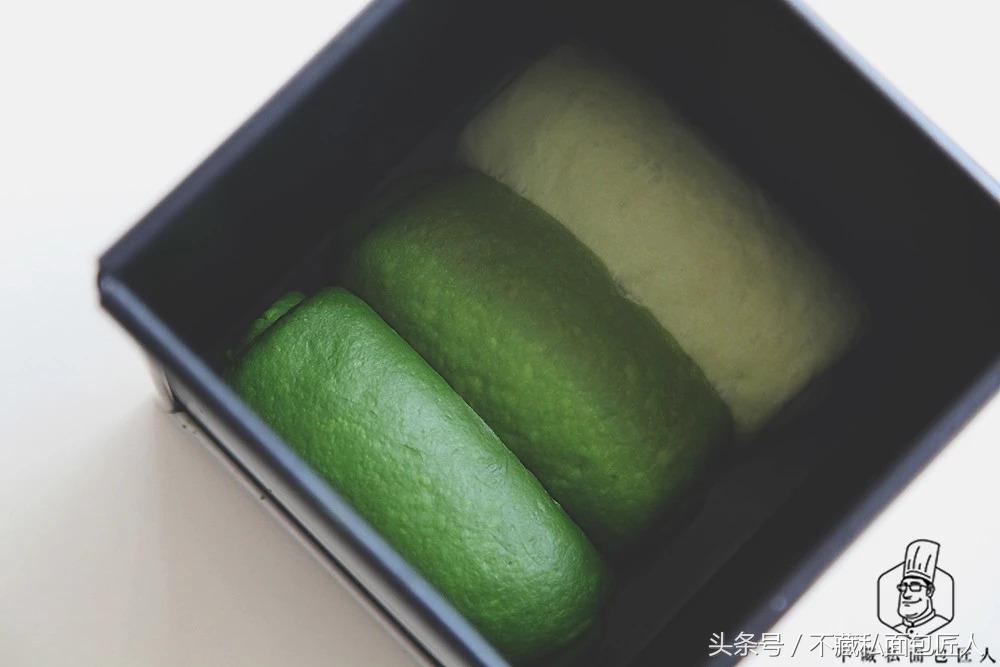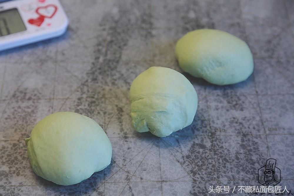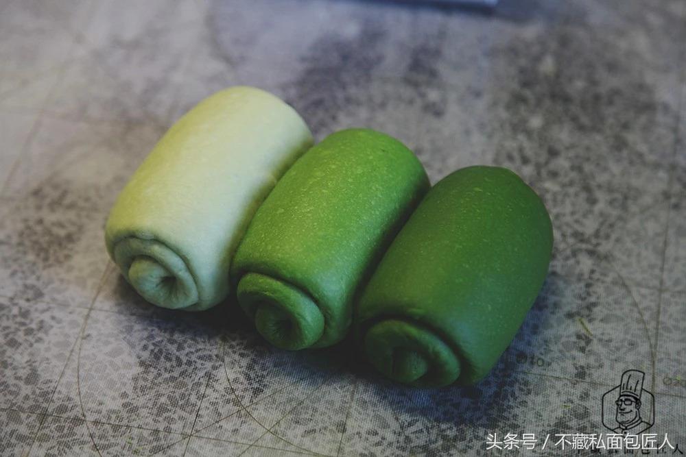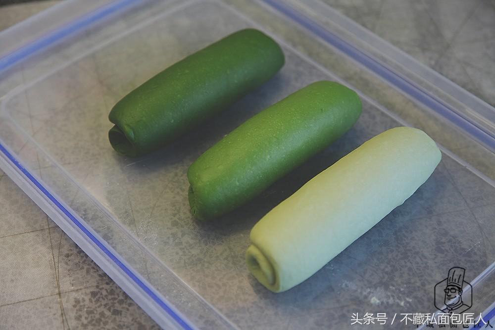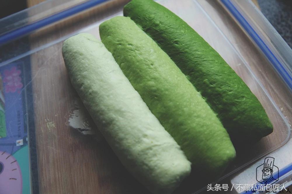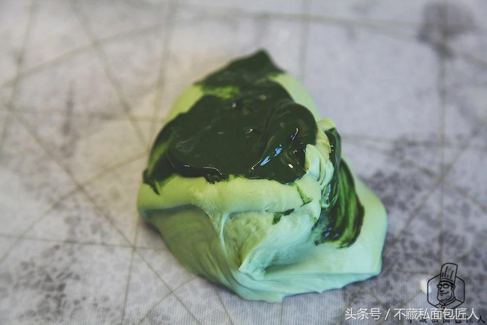 小编在基础面团中添加了0.5g抹茶粉;第一个面团添加了4g抹茶粉;第二个面团添加了6g抹茶粉,给大家一个参考。
