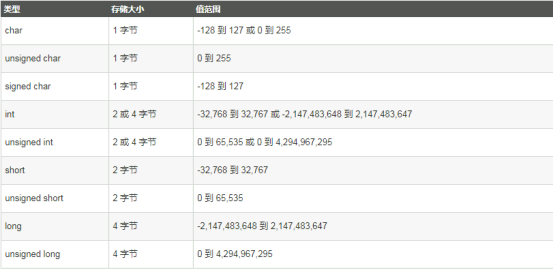 以上是整型数据类型的基本类型了,但有时候大家会看到long long或者是long int这种写法,其实也没什么稀奇的,32位中,long long占8字节,long int占4字节,大家不必纠结,因为这些都不常见,也没什么卵用。