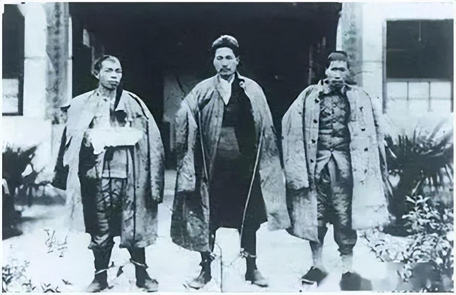 王如痴、方志敏、刘畴西英勇就义前合影,脚下的镣铐能锁住他们的身体,却锁不住他们的精神