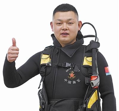 由于东海海域水质浑浊,伸手不见五指。为练就“浑水摸鱼”本领,他把握训练场的每一分钟,一有时间就请教钻研,潜水池里摸硬币练敏感度、码头摸钢管练方向感、水下电焊切割练度……