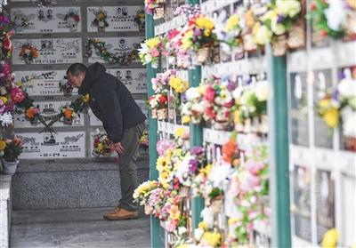 4月5日,市民前往万安公墓祭奠。将骨灰盒放入墙内骨灰格的立体安葬方式,成为众多家庭的选择。新京报记者 陶冉 摄