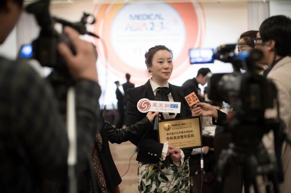 沈阳杏林整形外科医院史灵芝院长在医疗亚洲颁奖礼上接受媒体采访