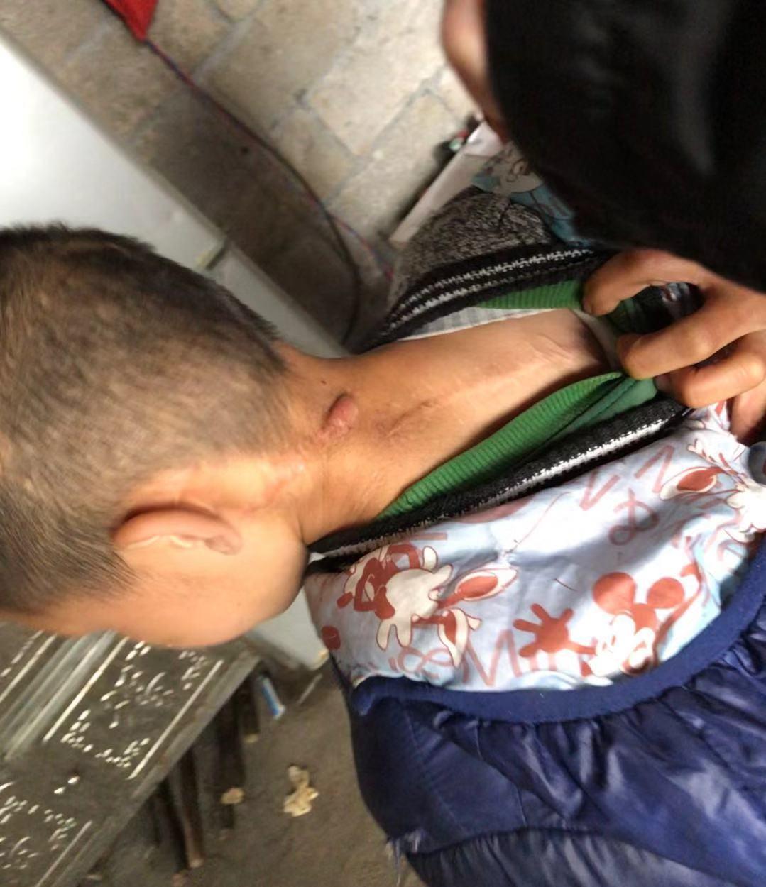 9岁的儿子虽然活过来了,但背上留下了一条十多厘米长的伤痕,从颈部延伸到背上,像一条蜈蚣趴在身上。