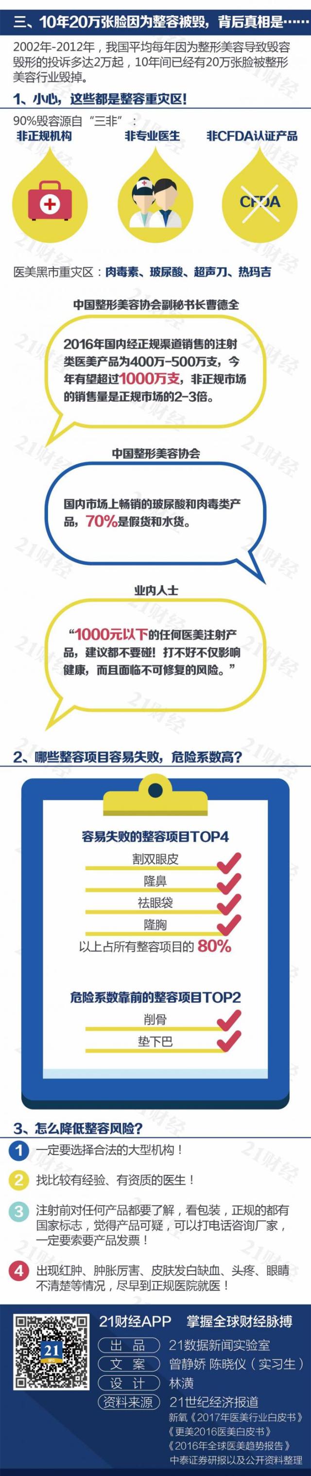 此外,10年间有20万张脸因整容被毁,整容行业有哪些重灾区?有哪些整容方式比较危险?又该如何规避这些风险呢?
