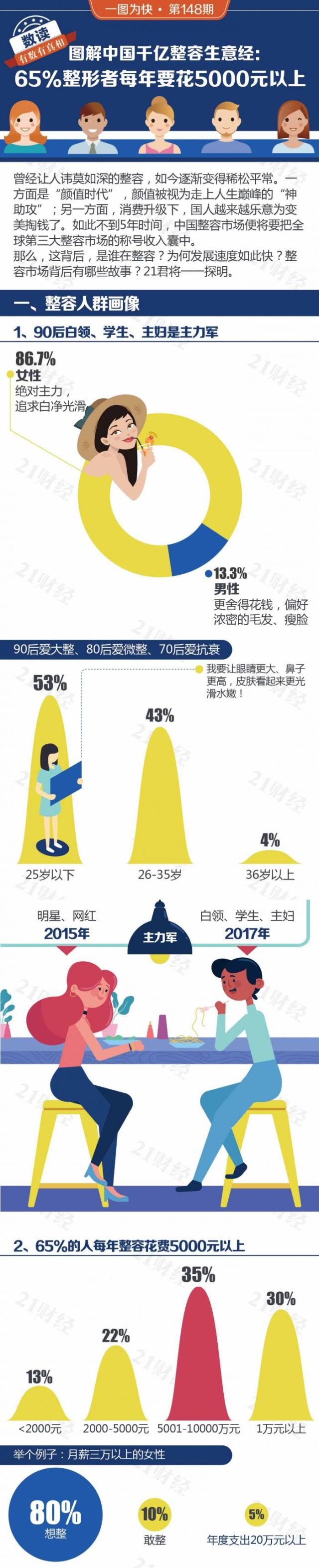 据悉,有65%的整形者每年花5000元以上,哪些人群会整容,他们为什么要整容呢?