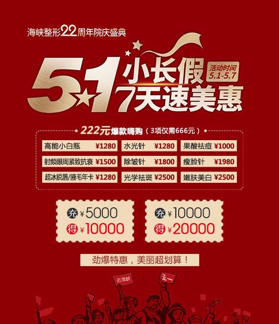 五月榴花,美人明艳。五一小长假在大家的期盼中姗姗来迟,这个假期,济南海峡整形为您奉上一场蝶变的饕餮盛宴。超值人气项目,送给爱美的你!