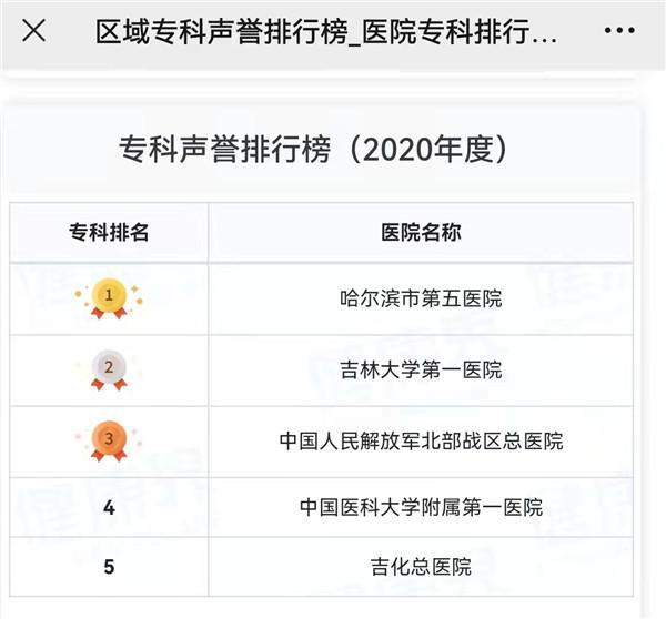 东北网11月20日讯(王甦 高军震 记者 杜筱) 11月20日,复旦版《2020年度中国医院专科声誉和综合排行榜》正式对外发布,哈尔滨市第五医院连续7年位居东北地区烧伤外科榜首。