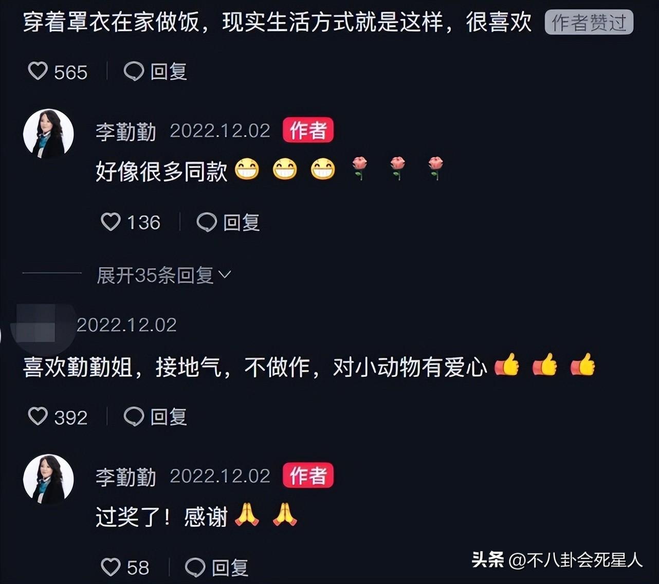 不止眼镜和普通人一样,就连她穿的罩衫也让人倍感熟悉,很多人都有同款,还有人在她的视频底下留言,“穿着罩衣在家做饭,现实生活就是这样。”看得出来,网友们更喜欢这样接地气不做作的明星,李勤勤的真实值得观众的喜欢。